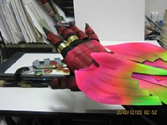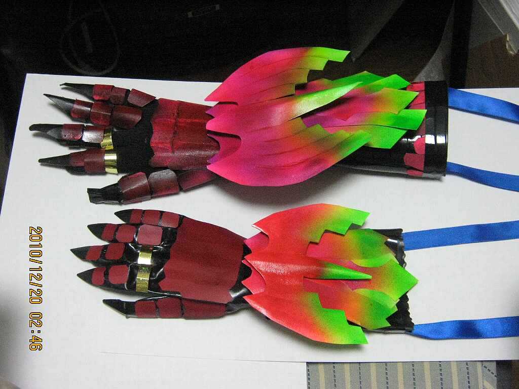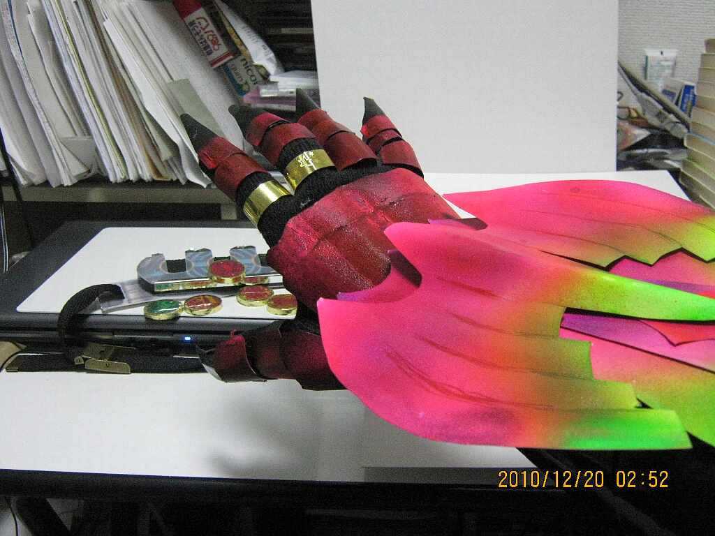 手の甲は、上は黒紙にピンクの蛍光ペイントで、下のは元々、この色の紙をそのまま。