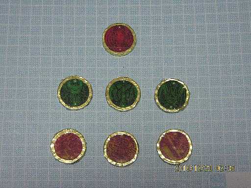 (ちなみに真ん中のメダル入れの部分は使わず、独自に黒い厚紙で、右画像の右下部分を3枚作った。)