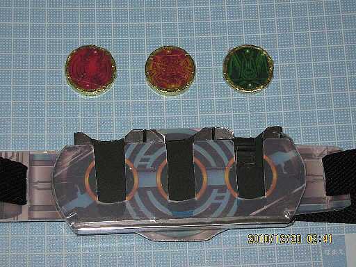 ドライバー(バックル)メダル、タジャスピナー(ギガスキャン)メダル、メダジャリバーメダルを