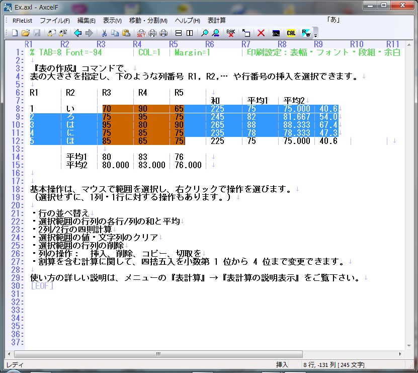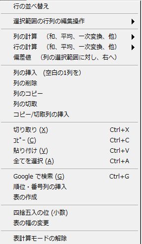 テキスト形式のまま、表計算が可能!